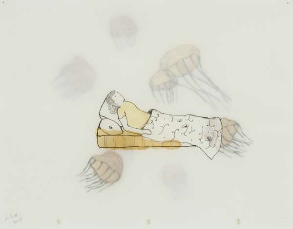 Avish Khebrehzadeh Sleeping woman and Jellyfish, 2007 resina e pastello a olio su due strati di carta acetata e carta Kozo, cm. 28x35 Firma in basso a sx Opera archiviata presso la Galleria S.A.L.E.S.,Roma al n. AK 033-07 Esposizioni: Avish Khebrehzadeh,MACRO Museo Arte Comtemporanea,Roma 16/11/07 - 03/03/08; The road to contemporary art, Roma, stand. Gall. S.A.L.E.S. Roma 28/032/08 - 02/03/08