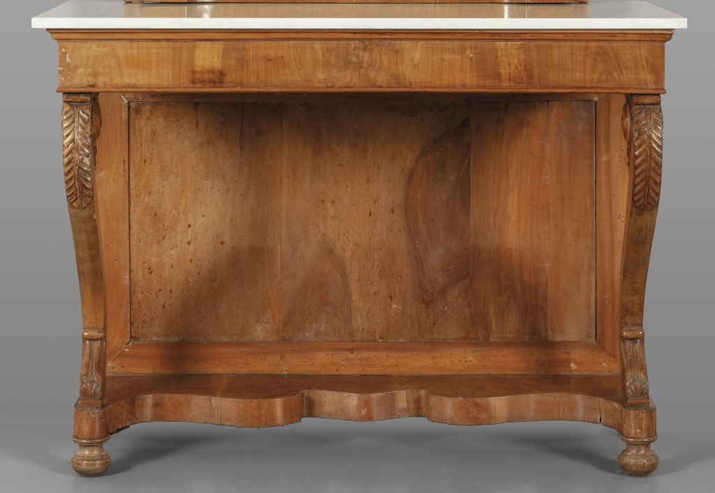 Console Carlo X lastronata in noce piano in marmo sec.XIX