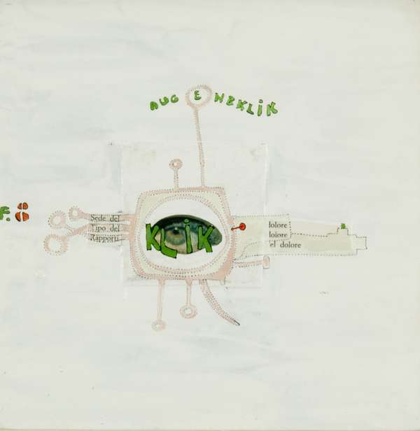 Gianfranco Baruchello Augemb(klik), 1966 smalto e collage su lastra di alluminio, cm. 20x20 Firma sul retro Bibliografia:Copertina - Bollettino d'informazione dell'Ordine degli Architetti - n. 11 - 1994. Sul retro dedica ad personam