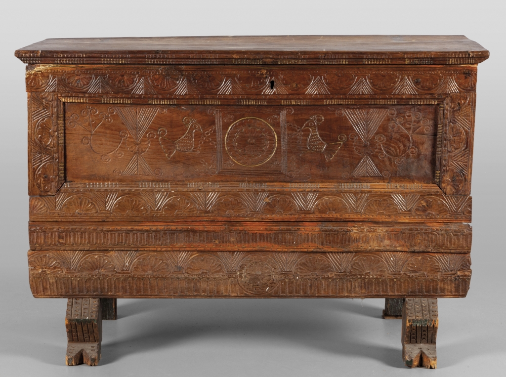 Cassapanca in legno intagliato Sardegna sec.XVIII