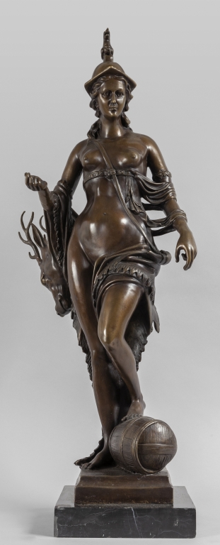 Diana cacciatrice scultura in bronzo a patina scura poggiante su base in marmo fine sec.XIX