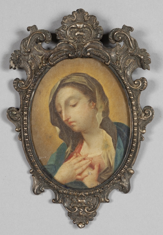 'Madonna orante' olio su rame di forma ovale sec.XVIII cornice barocca in argento sbalzato