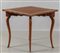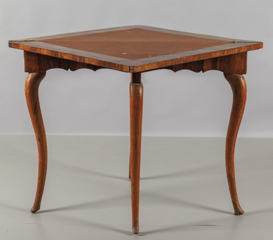 Tavolino Luiig XIV da gioco ad angolo lastronato in palissandro e filettato in legno di rosa gambe in massello Genova I metà sec.XVIII