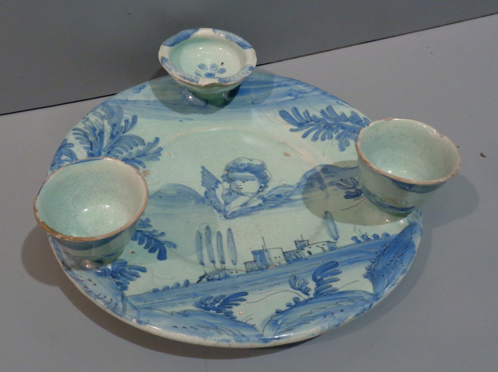 Portauova in ceramica decorazione bianca e blu