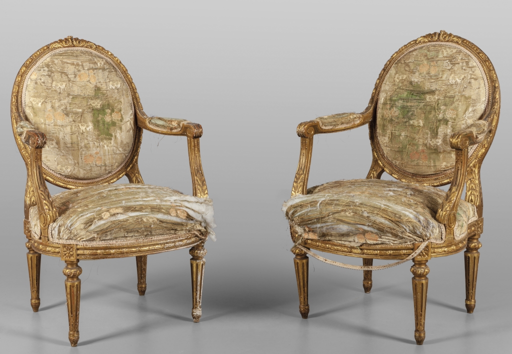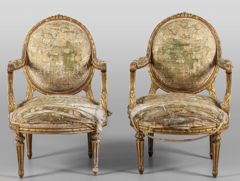 Coppia di poltrone Napoleone III in legno intagliato e dorato