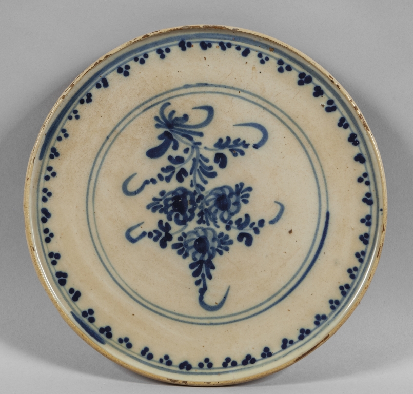 Alzata in ceramica decorazione blu su fondo bianco Savona sec.XVIII