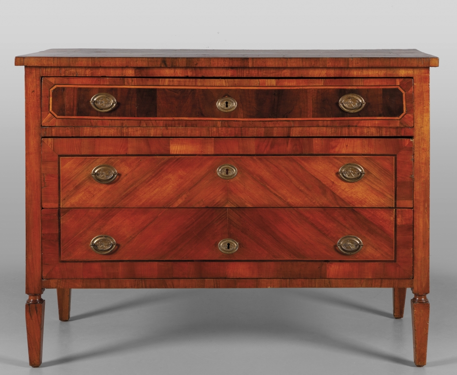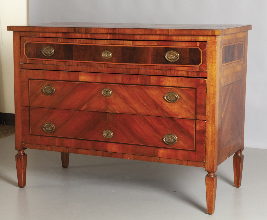 Comò Luigi XVI lastronato in legni vari due cassetti più due Bologna fine sec.XVIII