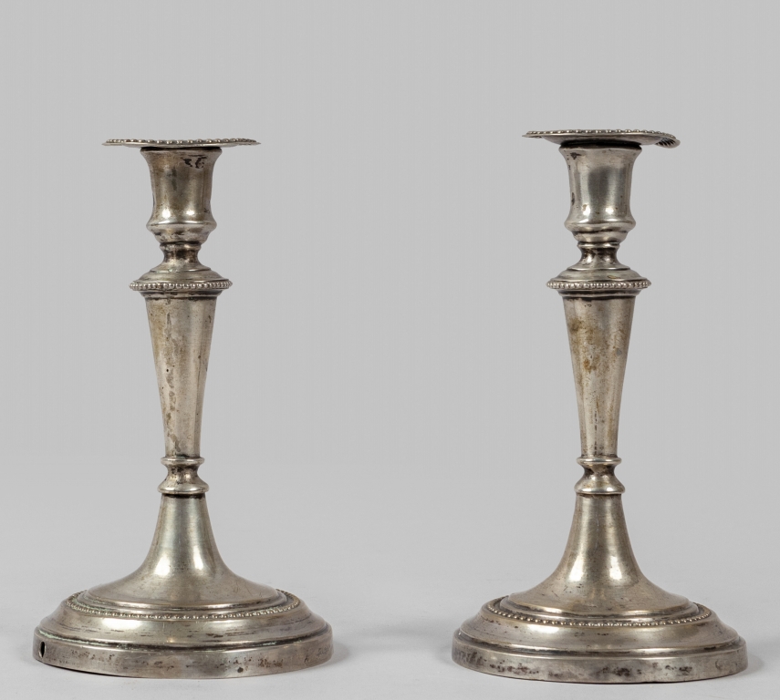 Coppia di candelieri in argento Milano fine sec.XVIII