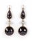 Piccola parure in oro giallo basso titolo formata da orecchini di forma pendente e spilla con incastonati granati taglio briolette di forma rotonda e a goccia contornati da piccole perle naturali