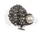 Spilla epoca Liberty in argento e oro giallo a forma di pavone con montata una perla di mm 8 e piccole rosette di diamante