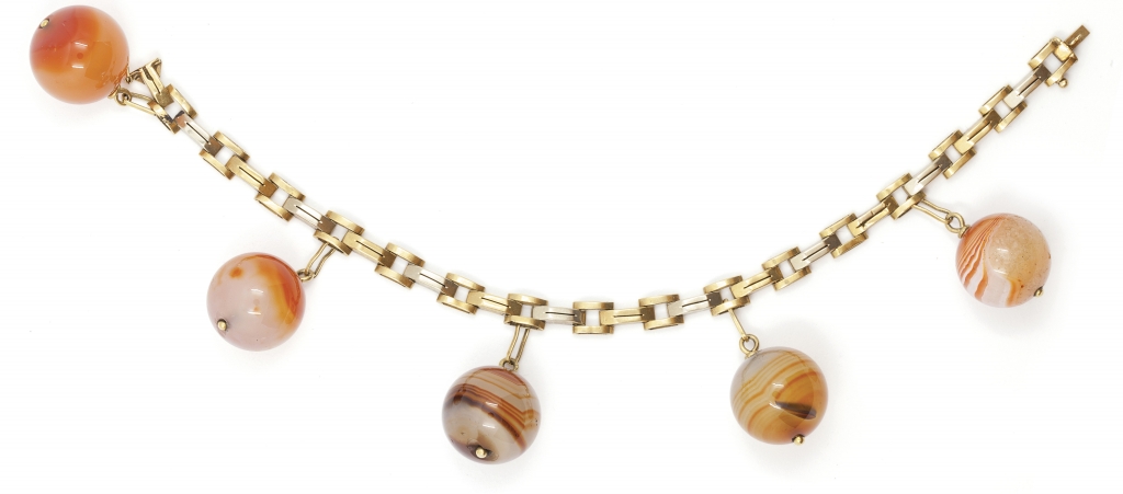 Bracciale in oro giallo con pendenti in sfere di corniola di mm 16