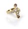 Anello a forma di contrarier in oro giallo con incastonati diamanti taglio brillante per tot ct 0 70 circa e due rubini taglio rotondo per tot ct 0 30 circa