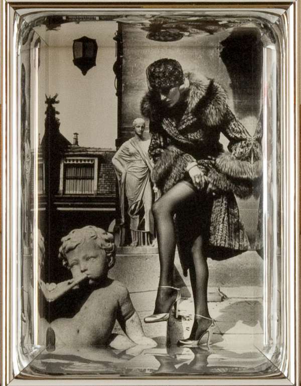 Helmut Newton Woman in fur coat adjusting stocking, 1975 postcard, cm. 15x11 Firma sul retro