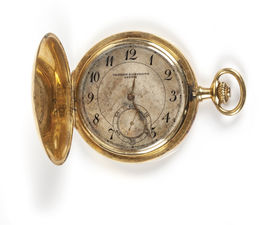 Orologio da tasca doppia cassa marca Vacheron e Constantin in oro giallo quadrante argento e numeri arabi