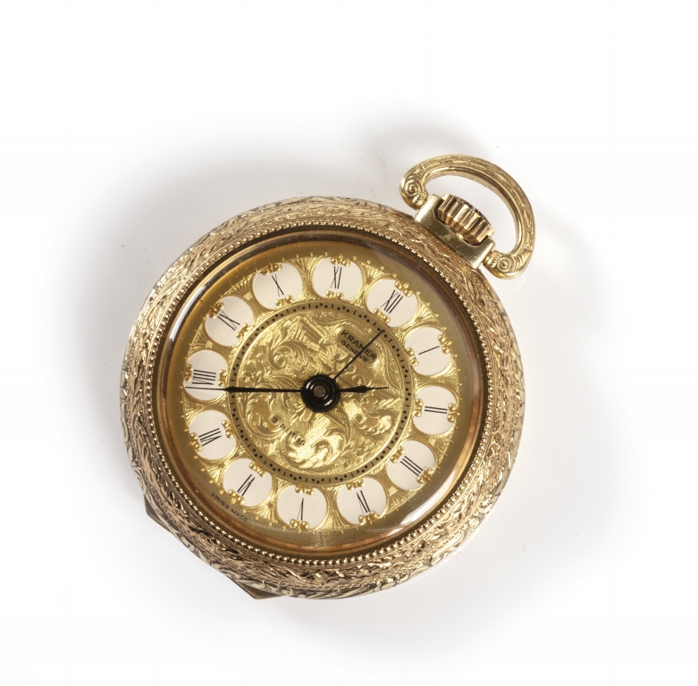 Orologio da tasca doppia cassa placcata in oro giallo marca Kramer Genève suoneria quadrante inciso con numeri romani