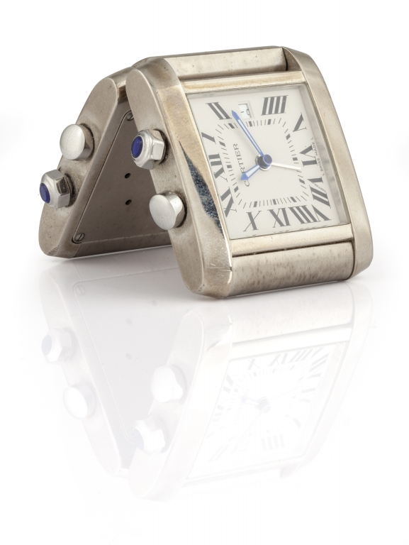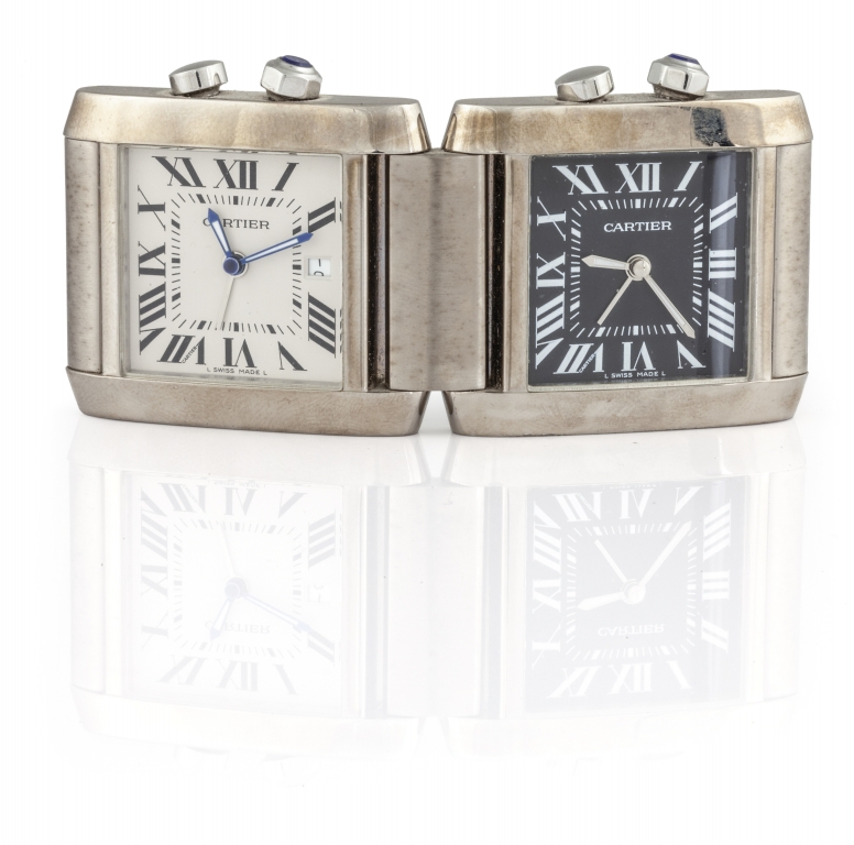 Orologio da tavola in acciaio firmato Cartier modello doppia ora