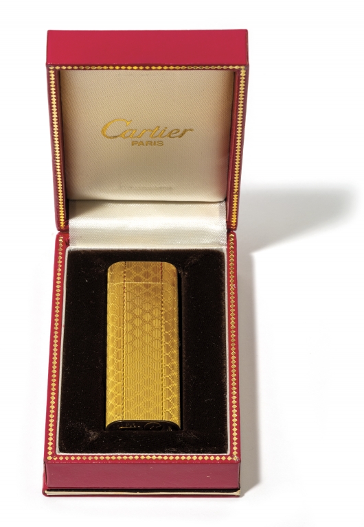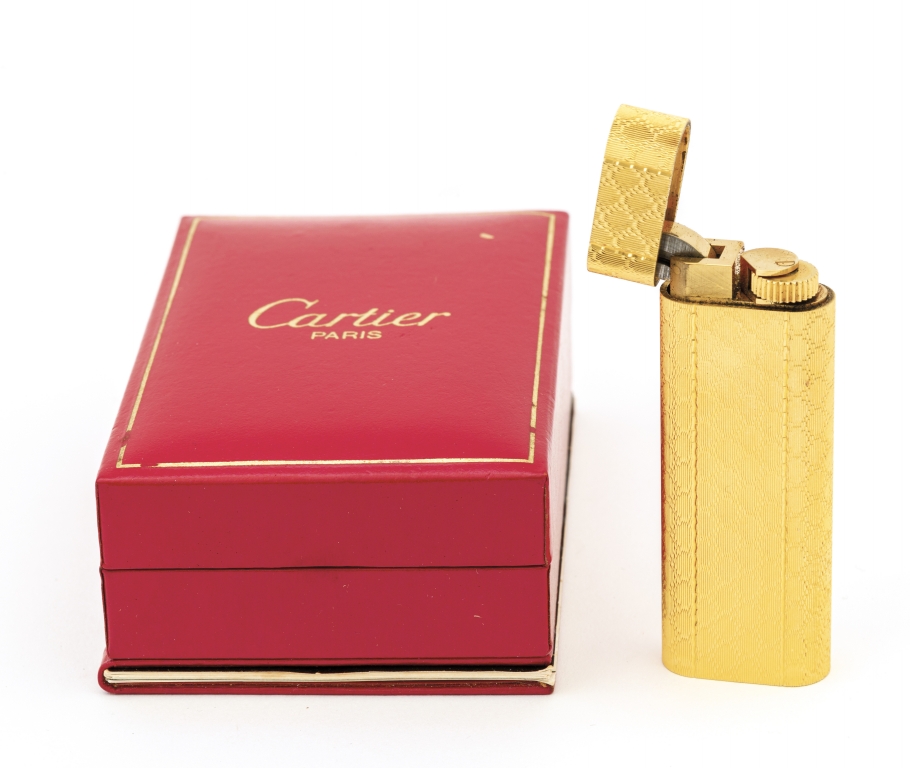 Accendino firmato Cartier in oro placcato lavorazione a guillochè scatola e garanzia