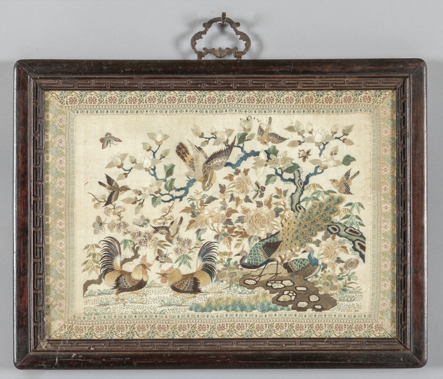 Antico ricamo dentro cornice in legno Cina sec.XIX