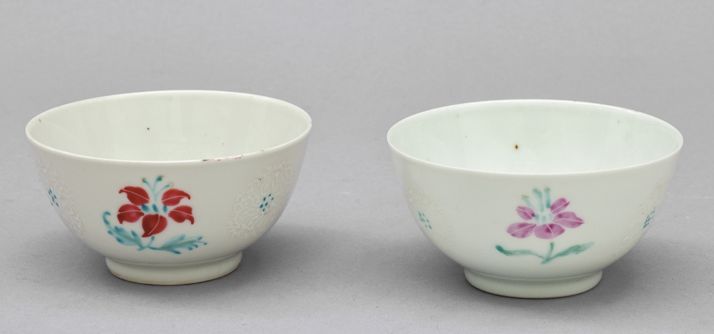 Coppia di tazzine in porcellana di Cina decorate in policromia a fiori sec.XIX