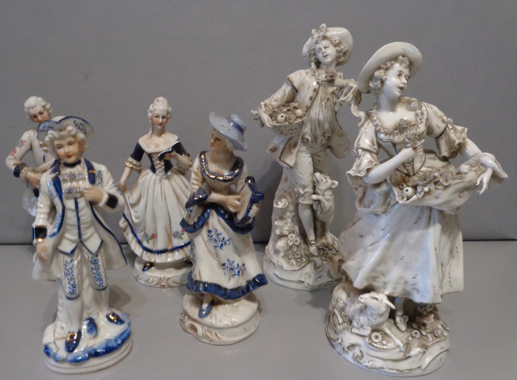 Gentiluomini con damine tre coppie di statuine in porcellana policroma