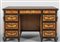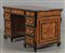 Scrivania a bancone da centro in stile Luigi XV lastronata in radica di noce con cornicette nere