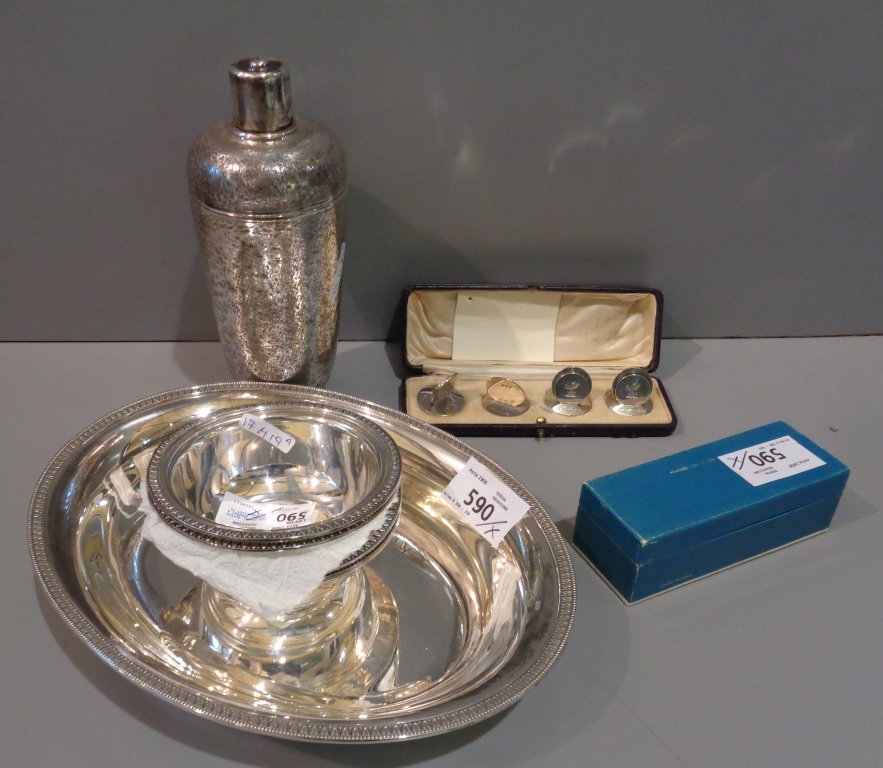 Coppa ovale quttro coppette sheaker e altri oggettini in argento