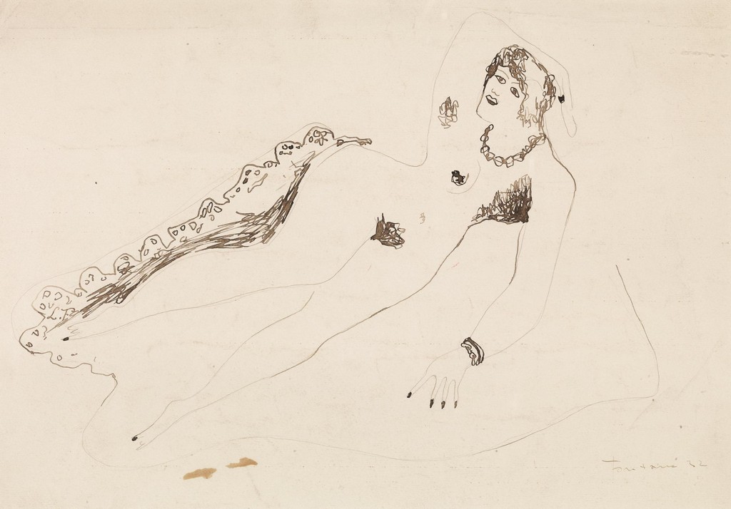 Lucio Fontana (Rosario de Santa Fè 1899 - Comabbio 1968) NUDO FEMMINILE inchiostro su carta, cm 21x29 firmato e datato eseguito nel 1932 L'opera è accompagnata da autentica su fotografia dell'Archivio Lucio Fontana, n. 1650/1
