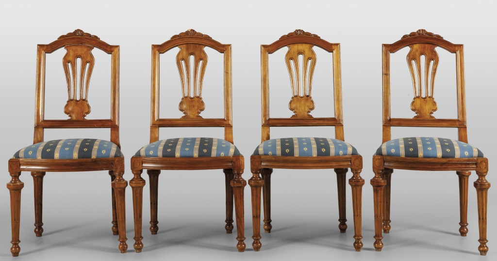 Dieci sedie in stile Luigi XVI schienale a stecca