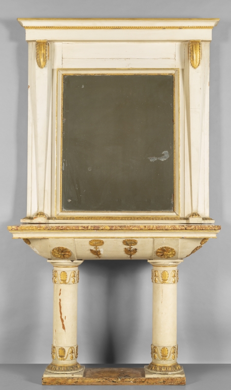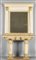Console Impero con specchiera in legno intagliato dorato e laccato bianco piano in broccatello di Spagna specchio di epoca Genova inizi sec. XIX