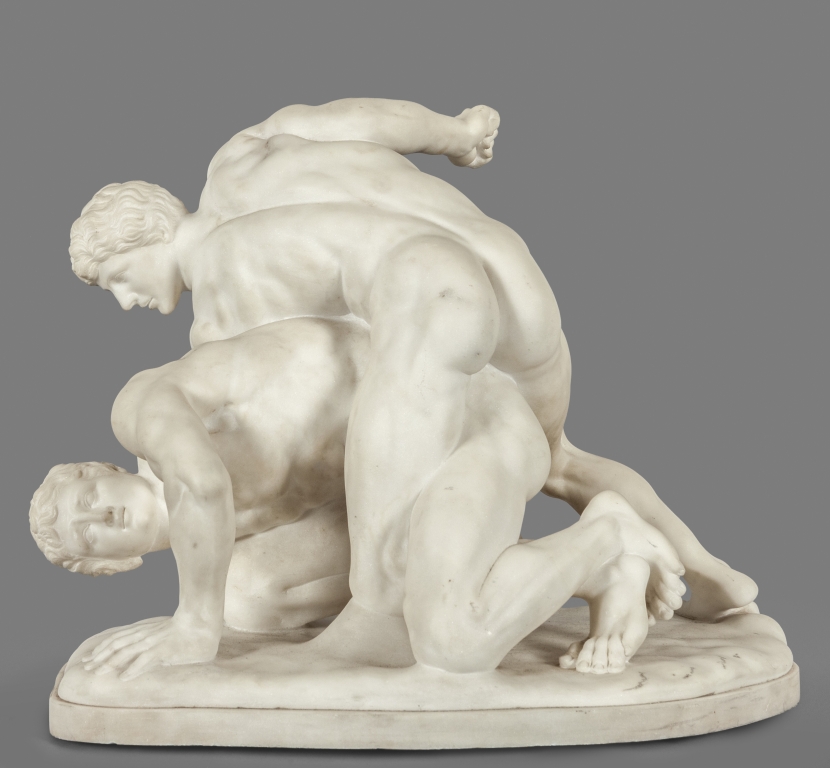 Ercole ed Anteo scultura in marmo bianco sec. XIX