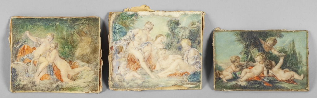 'Scene allegoriche' tre miniature su avorio sec.XVIII