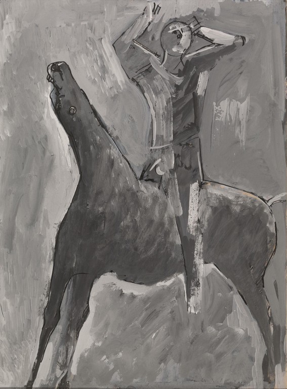 Marino Marini (Pistoia 1901 - Viareggio 1980) CAVALLO E GIOCOLIERE tempera su carta, cm 38x28,6 firmato e datato eseguito nel 1945 L'opera è accompagnata da autentica dell'Archivio Marino Marini con il n.279