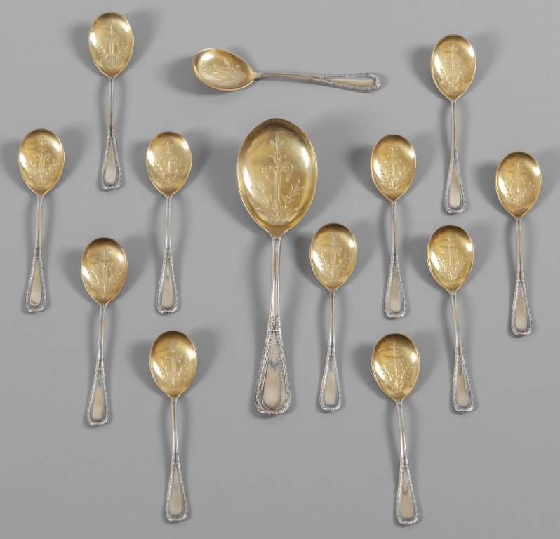 Servizio da gelato Liberty in argento vermeille cucchiaio e 12 cucchiaini