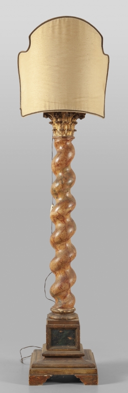 Colonna a tortiglione in legno intagliato laccato con capitello finemente intagliato e dorato montata a lampada sec.XIX