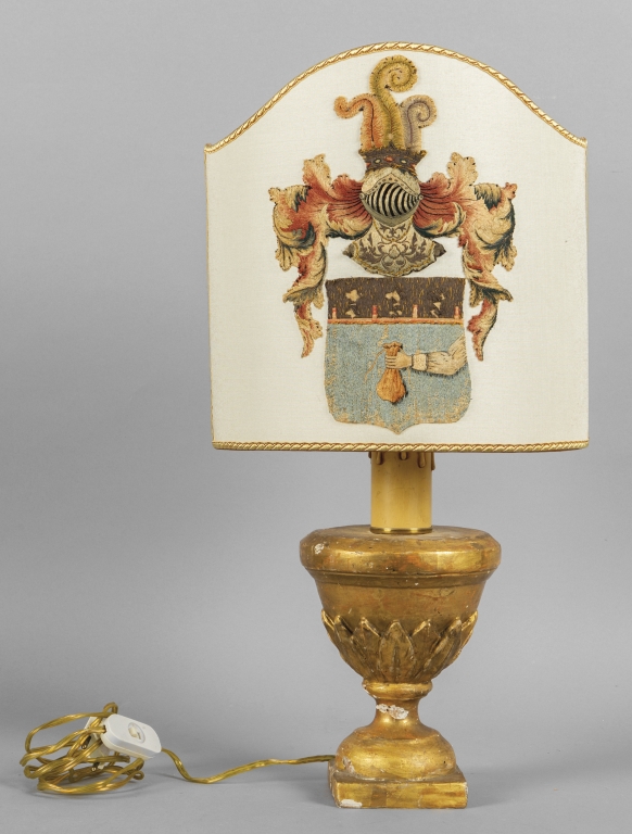 Vaso in legno intagliato e dorato montato a lampada fine sec.XVIII