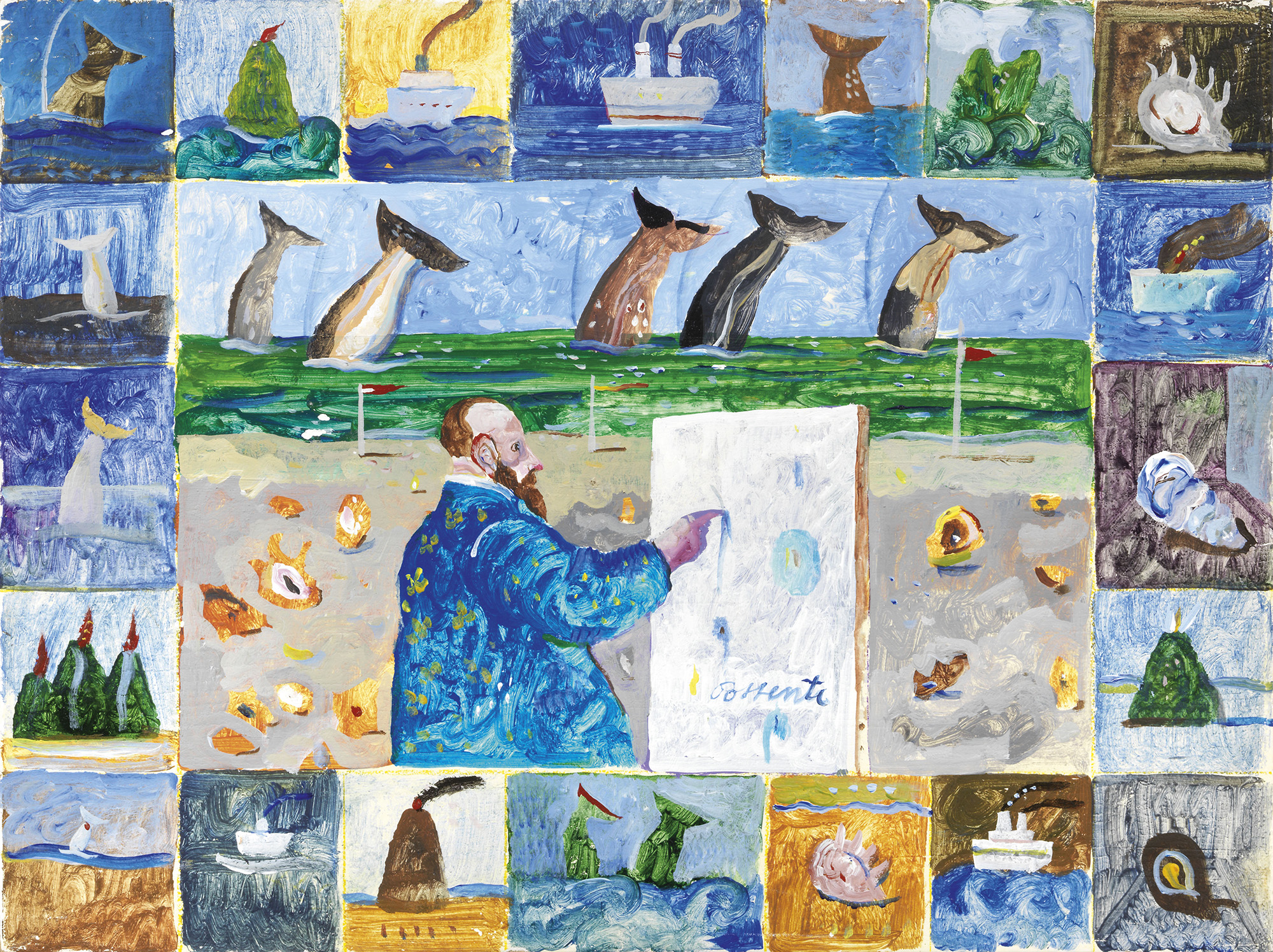 Antonio Possenti Lucca 1933 - 2016 Autoritratto sul mare, 1985 Olio su cartone, cm. 30x40 Firma al centro verso il basso: Possenti; titolo e firma al verso: Autoritratto / sul / mare / Possenti. Foto autenticata dall'artista su certificato Archivio delle Opere del Maestro Antonio Possenti, con n. 2242