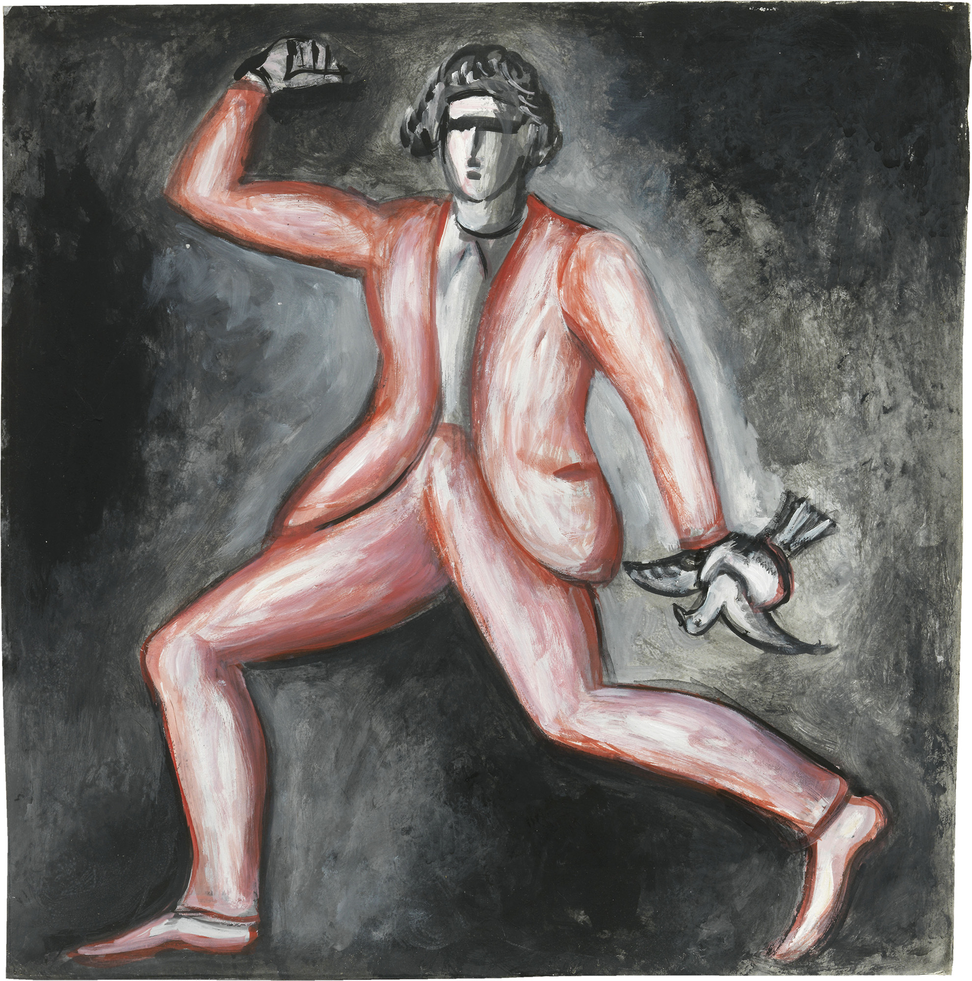 Roberto Barni Pistoia 1939 Figura con colomba, 1988 Acrilico su carta, cm. 45x44 Firma e data al verso: Roberto Barni / 1988