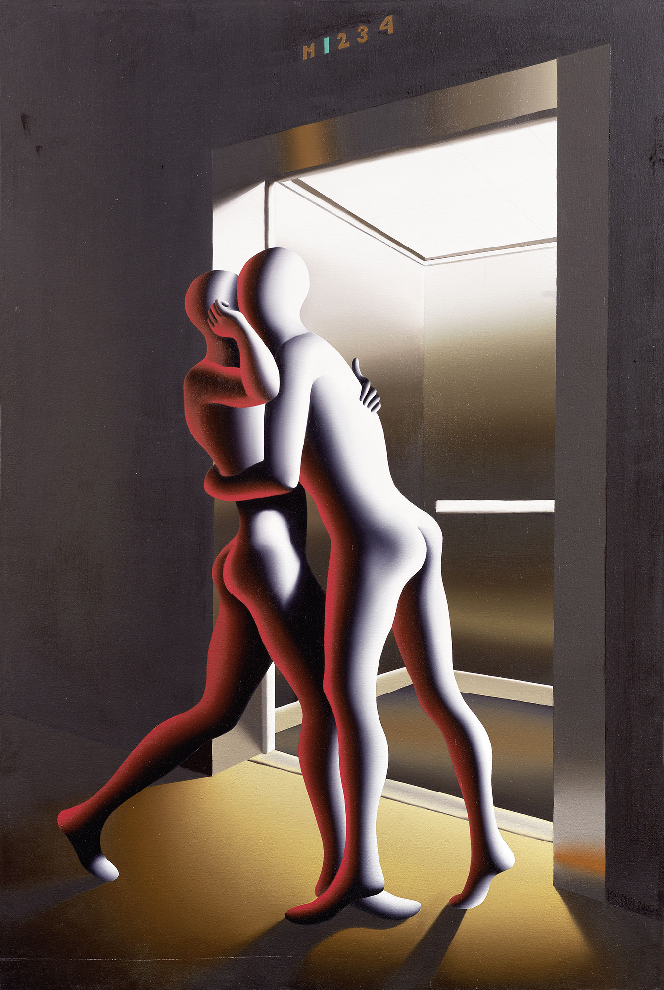 Mark Kostabi Los Angeles 1960 Farewell for Now, 2003 Olio su tela, cm. 150x100 Firma, titolo e data al verso sulla tela: Mark Kostabi / Farewell for Now / 2003 / 9-11-03 Calory; sul telaio: etichetta con n. 2232 e timbro Studio Lattuada, Milano