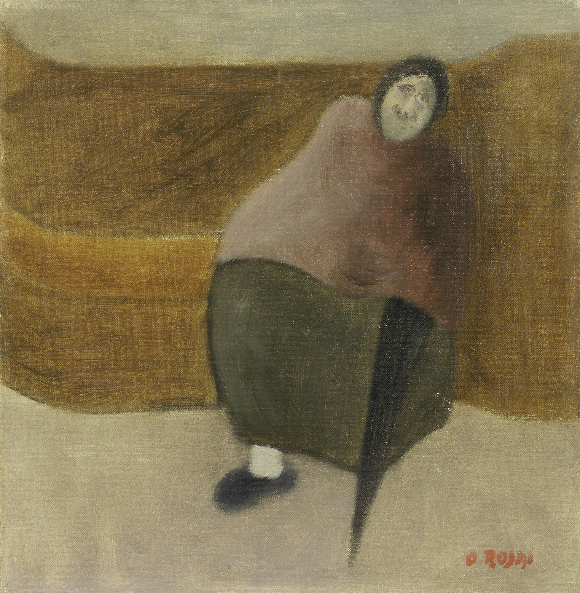Ottone Rosai Firenze 1895 - Ivrea (To) 1957 Povera, 1940 ca. Olio su tela, cm. 40,3x39,1 Firma in basso a destra: O. Rosai; titolo al verso sul telaio: "Povera": timbro Galleria del Milione, Milano, con n. 6236; sulla tela: etichetta con timbro Galleria del Milione, Milano, con n. 6236. Certificato su foto di Luigi Cavallo, Milano, 18 aprile 2019