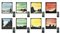 Pierluigi Pusole Torino 1963 Otto televisori con telecomando, 1987 Acrilico su tela, cm. 15x7 ognuno (telecomando), cm. 60x60 ognuno (televisore) Sigla al verso di ogni telecomando: PU; etichetta dell'artista, firma e data al verso sulla tela di sei televisori: Pierluigi Pusole / 87. Storia: Asta Finarte n. 1189, Milano, dicembre 2002, lotto n. 569; Collezione privata