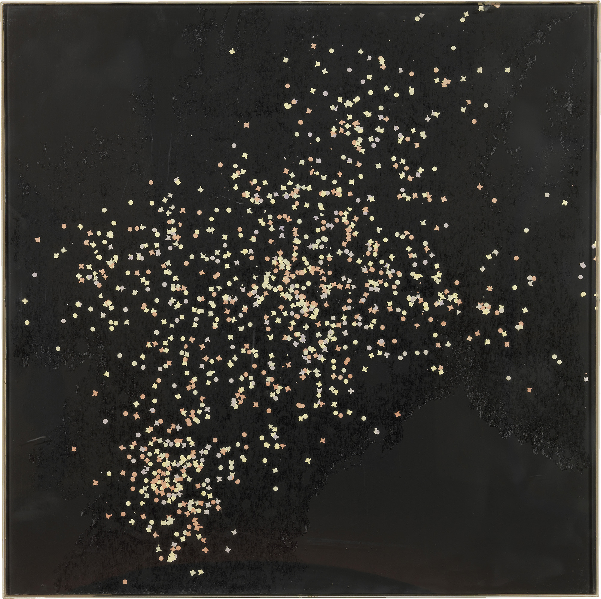 Tano Festa Roma 1938 - 1987 Coriandolo Acrilico e coriandoli su tela, cm. 100x100 Firma al verso sulla tela: Festa