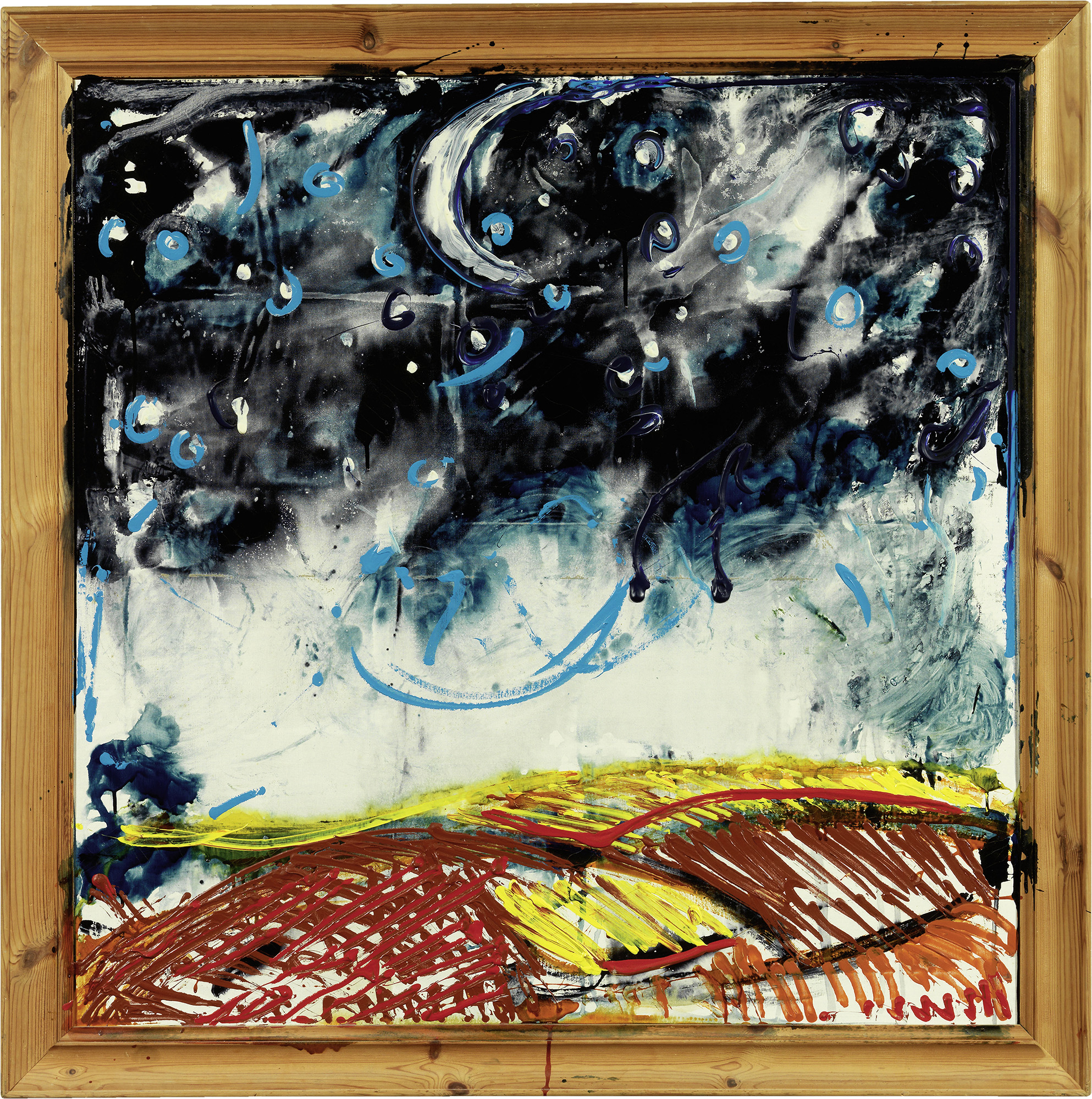 Mario Schifano Homs 1934 - Roma 1998 Nottetempo, 1987 Smalto su tela, cm. 100x100 Titolo, firma e data al verso sulla tela: Nottetempo / Schifano / 87. Certificato su foto Fondazione Mario Schifano. Archivio Generale dell'Opera di Mario Schifano, Roma, 10 aprile 2000, con n. 87/26. Bibliografia: Studio metodologico riguardante la catalogazione informatica dei dati relativi alle opere di Mario Schifano presenti presso la Fondazione M.S. Multistudio. Vol. A)II° Opere su tela 1983-1990/97, Università degli Studi di Genova, 2007, p. 180, n. 87/026