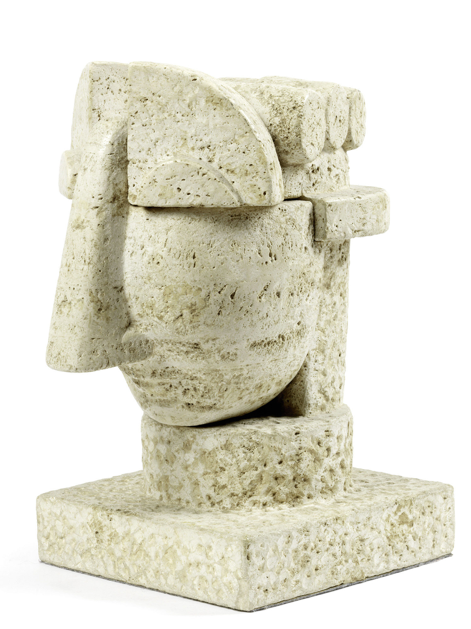 Pietro Cascella Pescara 1921 - Pietrasanta (Lu) 2008 Ricordo di viaggio, 1986 Scultura in travertino, cm. 39x27x23 Foto autenticata dall'artista, Verruncola, 20 gennaio 2001. Esposizioni: Il senso della pietra. Pietro Cascella a Pavia, Pavia, Castello Visconteo, Giardini del Castello, Piazza Vittoria, maggio - settembre 1987, cat. n. 28, illustrata