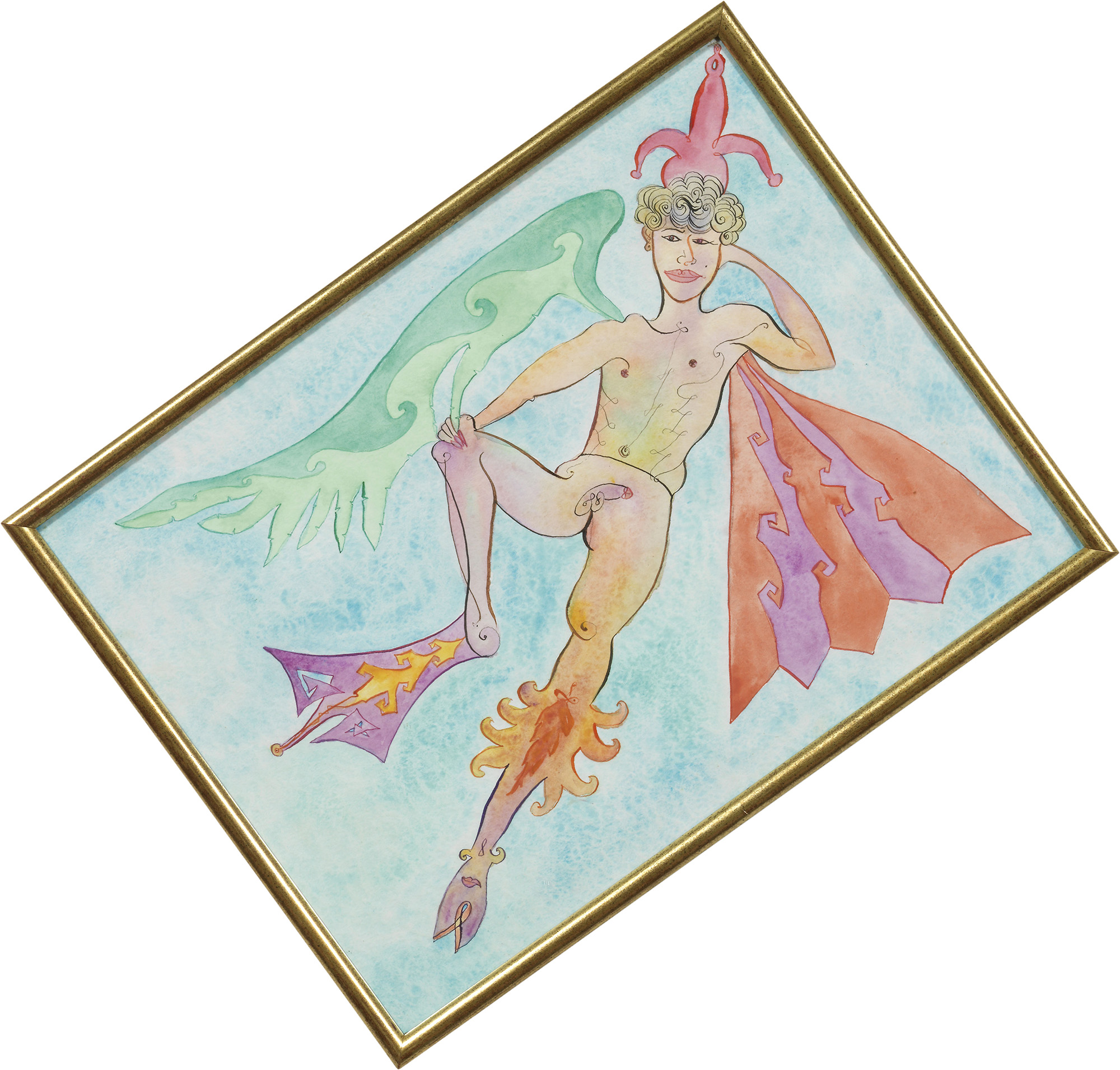 Luigi Ontani Vergato (Bo) 1943 Danava a Diwali, 1999 Acquerello su carta, cm. 38x50 Titolo e firma al verso: «Danava a Diwali» / Ontani / India; dedica su una carta al verso della cornice: [...] adorato del [...] / 2000 auguri / 1999 Roma