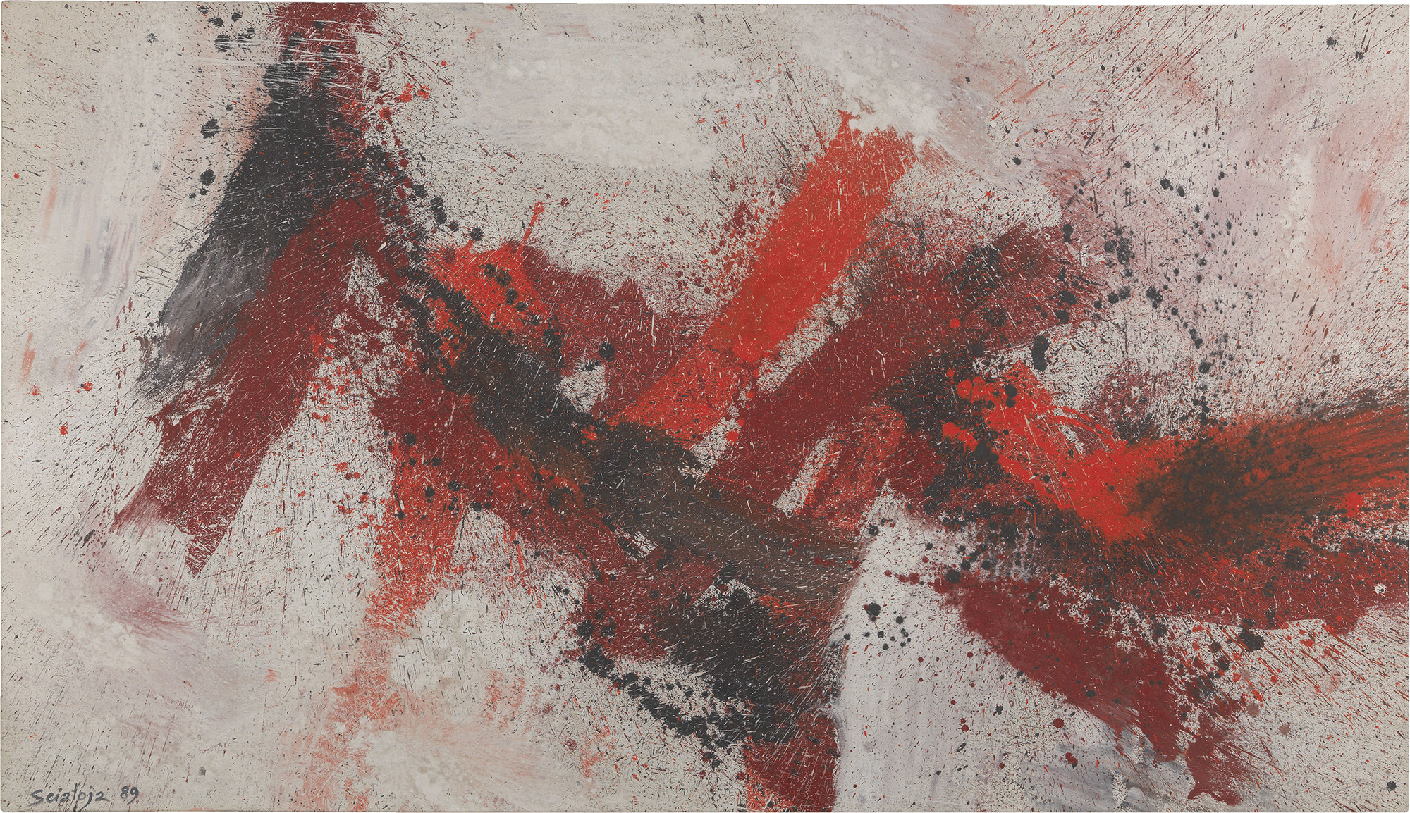 Toti Scialoja Roma 1914 - 1998 Senza titolo, 1989 Vinilico su tela, cm. 137,5x240 Firma e data in basso a sinistra: Scialoja 89. Certificato su foto Fondazione Toti Scialoja, Roma, 5/3/07, con n. 088907
