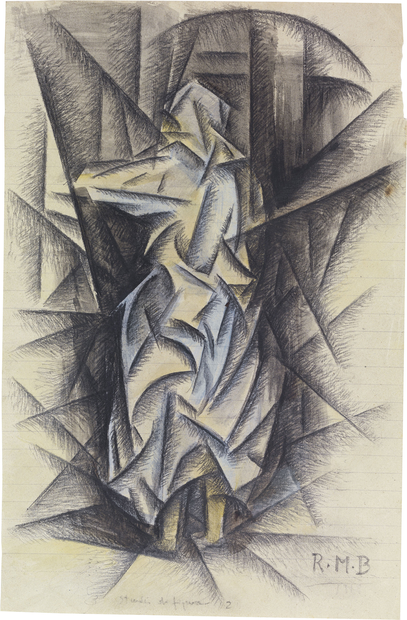 Roberto Marcello (Iras) Baldessari Innsbruck 1894 - Roma 1965 Studio di figura 2, 1916 ca. Carboncino, acquerello e matita su carta, cm. 30,1x19,5 Sigla in basso a destra: R.M.B., titolo in basso al centro: Studio di figura 2. Al verso abbozzo di altra composizione a carboncino con Studio Dinamico, probabilmente della fine del 1915. Esposizioni Baldessari, Opere 1915 - 1934, a cura di Maurizio Scudiero, Cortina d'Ampezzo, Galleria d'Arte Frediano Farsetti, 27 dicembre 2008 - 7 gennaio 2009, poi Milano, Farsettiarte, 15 gennaio - 14 febbraio 2009, cat. n. 24, illustrato a colori.