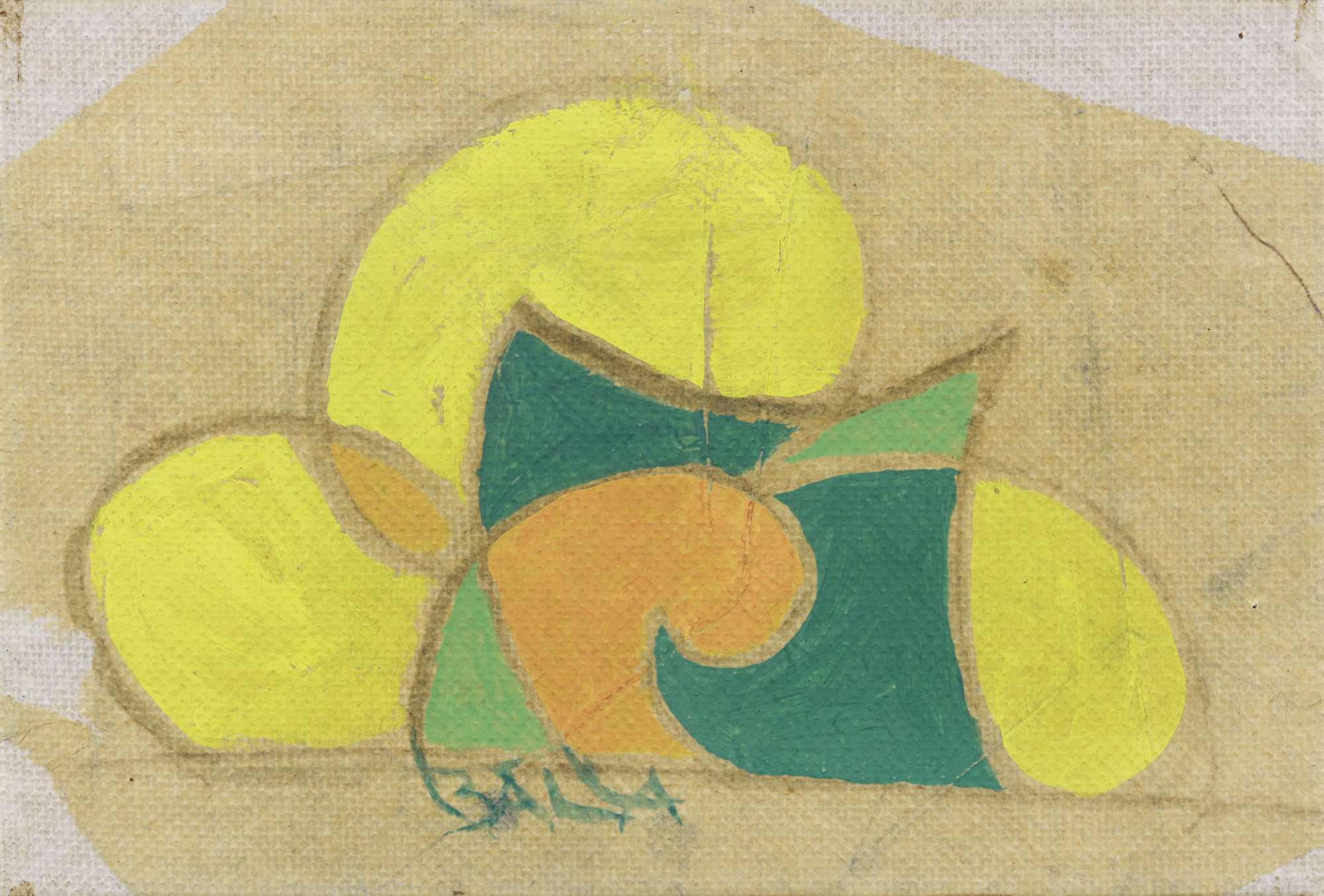 Giacomo Balla Torino 1871 - Roma 1958 Motivo floreale per ricamo, 1918 ca. Tempera su carta applicata su tela, cm. 13,4x19,7 Firma in basso al centro: Balla. Al verso: etichetta dattiloscritta di Casa Balla: etichetta Collezione Sbath Michele Lucia. Storia Casa Balla, Roma; Galleria Marescalchi, Bologna; Collezione privata Certificato su foto di Elena Gigli, Roma, 12 aprile 2018, archivio Gigli serie 2018, n. 800.