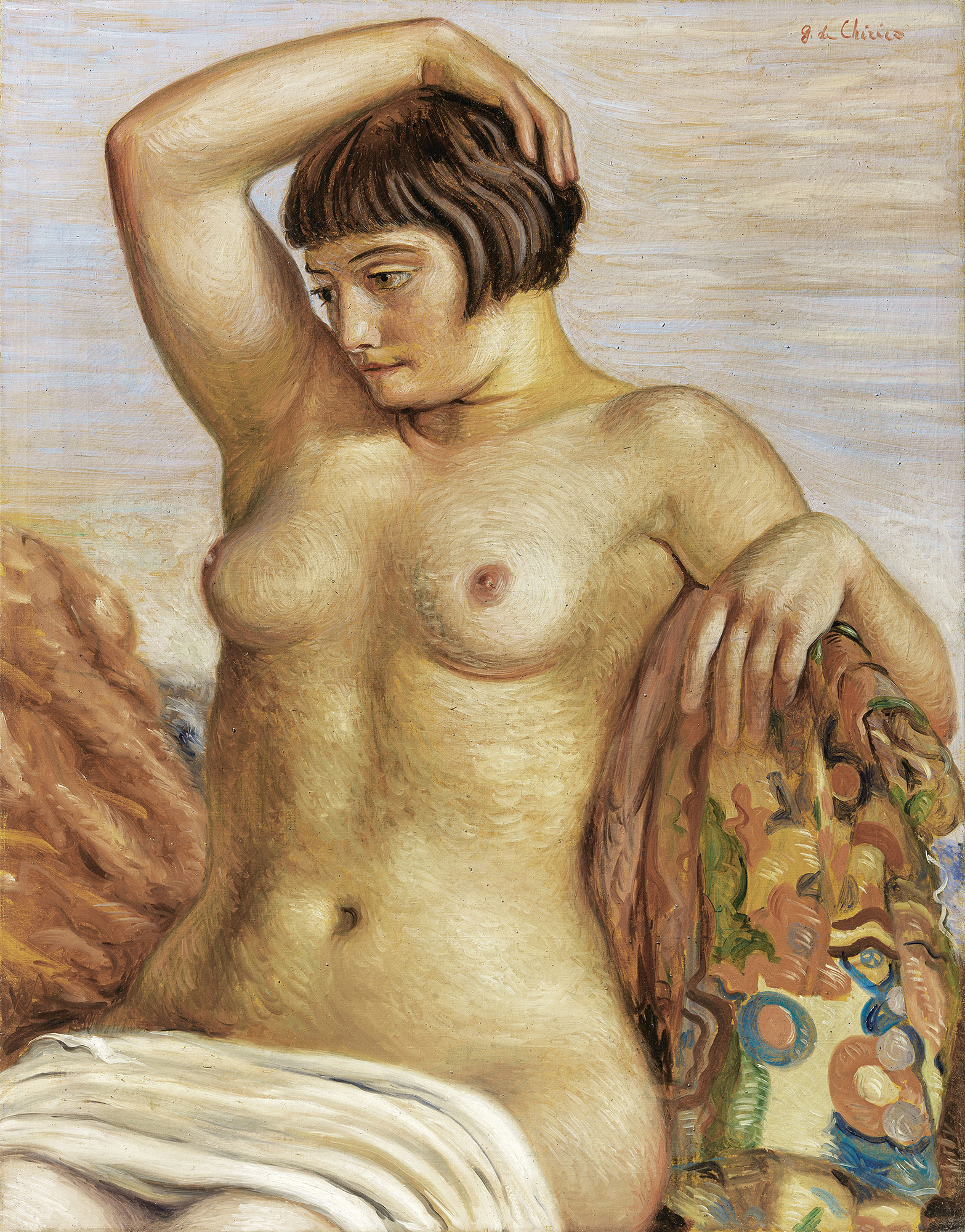 Giorgio de Chirico Volos 1888 - Roma 1978 Nudo di donna, 1930 Olio su tela, cm. 92,5x73 Firma in alto a destra: G. de Chirico; titolo e firma al verso sulla tela: "Donna nuda" / Giorgio de Chirico: dichiarazione di autenticità del notaio Diego Gandolfo, Roma, 10 giugno 1964. Storia Galerie L'Effort Moderne di Léonce Rosenberg, Parigi (archivi n. 1327); Galerie Île de France, Parigi; Collezione privata Bibliografia Claudio Bruni Sakraischik, Catalogo Generale Giorgio de Chirico, volume quarto, opere dal 1908 al 1930, Electa Editrice, Milano, 1974, n. 296; Domenico Porzio, Isabella Far de Chirico, Conoscere de Chirico, la vita e l'opera dell'inventore della pittura metafisica, A. Mondadori Editore, Milano, 1979, p. 293, n. 158; Jean Clair, William Rubin, Wieland Schmied, Giorgio de Chirico, Haus der Kunst, Monaco, Centre Georges Pompidou, Parigi, 1982 - 1983, p. 129, n. 52; Maurizio Fagiolo dell'Arco, I Bagni Misteriosi, de Chirico negli anni Trenta: Parigi, Italia, New York, Berenice, Milano, 1991, p. 75, n. 26 (con titolo Femme brune); Maurizio Fagiolo dell'Arco, Giorgio de Chirico. Gli anni Trenta, Seconda edizione, Skira editore, Milano, 1995, p. 75, n. 26; Maurizio Fagiolo dell'Arco, De Chirico gli anni Trenta, Mazzotta, Milano, 1998, p. 70, tav. b.