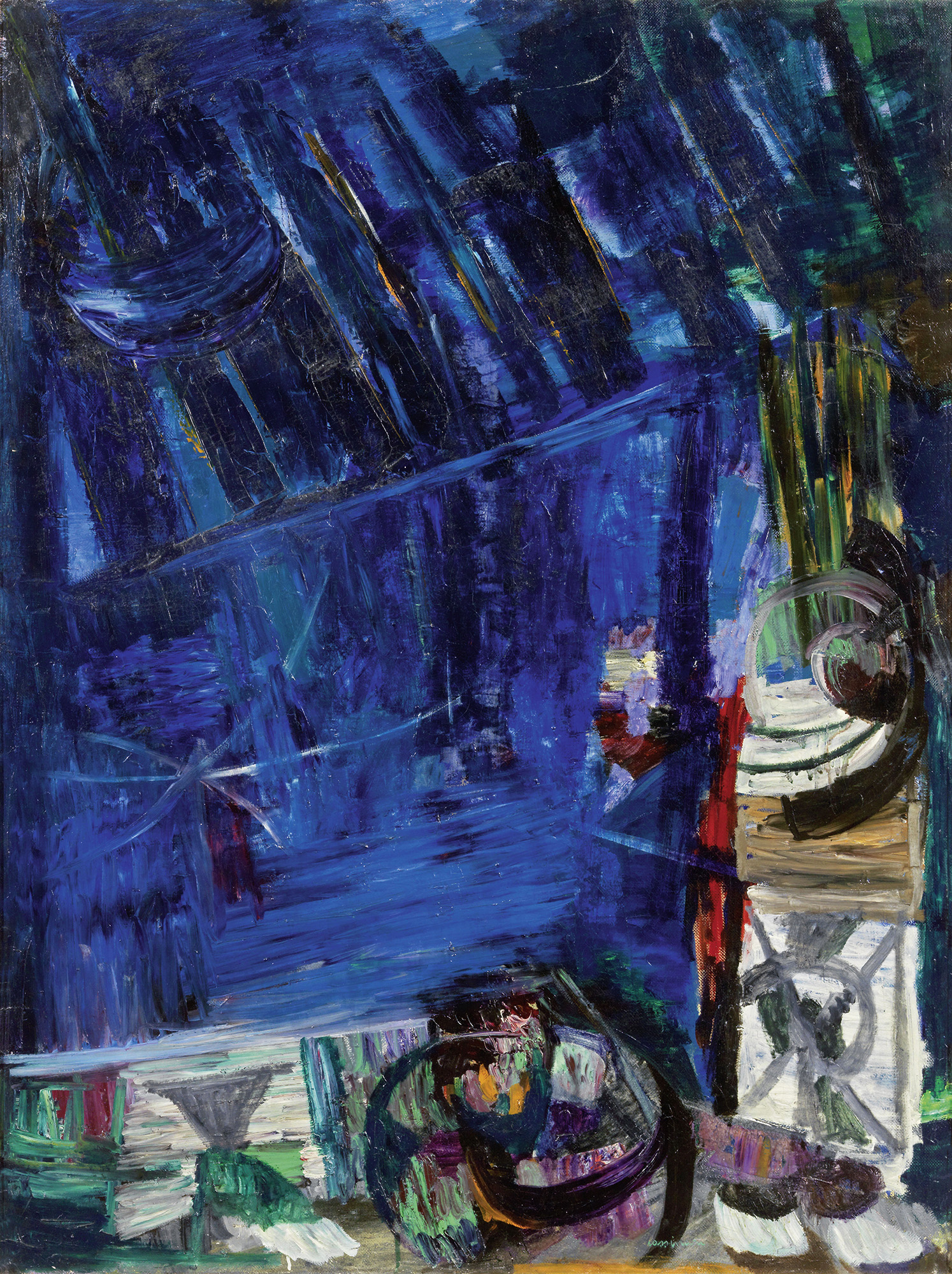 Bruno Cassinari Piacenza 1912 - Milano 1992 Mare, (1960) Olio su tela, cm. 130x97 Firma in basso a destra: Cassinari. Al verso sulla tela: etichetta con n. 2635 e due timbri Galleria Sianesi, Milano: etichetta Galleria Gissi - Torino / Espone dal 13 al 28 aprile 1962 / Bruno Cassinari / Cat. 7. Certificato su foto Comitato per il Catalogo Generale dell'Opera di Bruno Cassinari, Milano 8/5/2012, con n. 3315/C827.