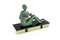 PRODUZIONE FRANCESE Scultura in bronzo - donna con colomba in patina verde base in marmo e onice - cm24x33x11 - 1930 ca